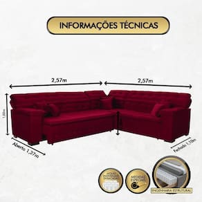 Sofá De Canto Magno 2,57x2,57m-vinho