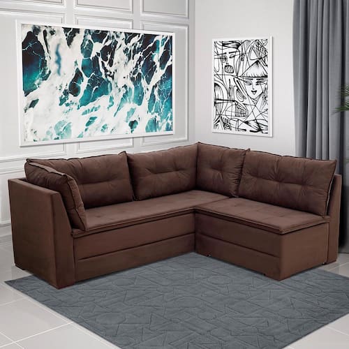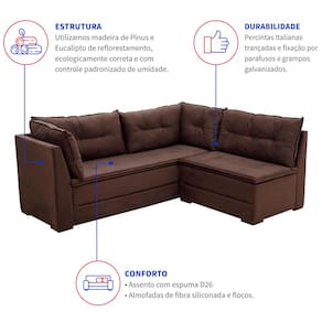 O sofá Quebec também é perfeito para quem se preocupa com a qualidade, pois sua estrutura é fabricada em madeira maciça de alta resistência. Além disso, a fixação do tecido é feita com grampos, prolongando a durabilidade e a vida útil do móvel. Com um design moderno e elegante, o modelo de canto economiza espaço, otimizando sua sala de estar, e as almofadas soltas no encosto agregam uma estética mais elegante que combinará com qualquer estilo de decoração que você quiser adotar para o ambiente.