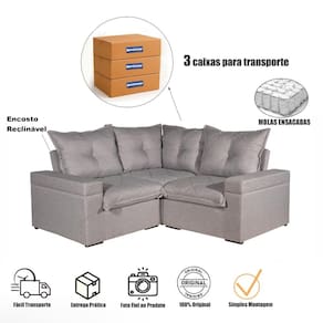 O Sofá de Canto Tera Plus Bom Pastor 4 Lugares é ideal para quem busca praticidade sem abrir mão do conforto. Com medidas de 1,90 x 1,90 m de largura, 1,00 m de altura e 98 cm de profundidade, é compacto e ao mesmo tempo aconchegante. Equipado com molas ensacadas e encosto reclinável, garante maciez, sustentação e versatilidade para seus momentos de descanso. Produzido com materiais de qualidade e direto da fábrica, é a escolha certa para valorizar sua sala de estar com elegância e durabilidade. Direto da fábrica, o sofá é enviado na caixa, o que facilita o transporte, torna a entrega mais prática e é de montagem simples.