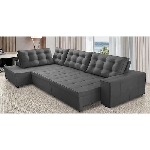 Sofá de Canto Retrátil e Reclinável com Molas 3,40x2,00 LE Jacke Suede Cinza Madelina Decor