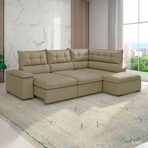 Caracteristicas: Marca: Besthouse Modelo: Fofao Premium Tipo: Sofa de canto retratil Tipo de encosto: Fixo Material do encosto: Almofada Removivel em fibras e flocos Assentos: Espuma D28 Material da estrutura: Madeira de eucalipto Bracos: Fibra e flocos Corredica: Tubular Molas: 8 molas nos assentos no total Pes: PVCD