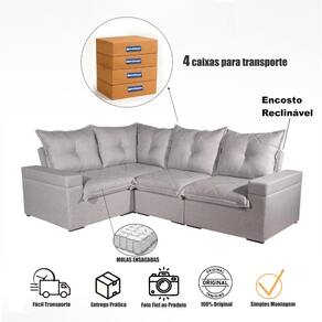 O Sofá 4 Lugares de Canto Tera Gold Bom Pastor é a escolha perfeita para quem busca elegância e conforto em um único móvel. Com dimensões de 1,90m x 2,62m, oferece amplo espaço para acomodar a família e os amigos. Seu encosto reclinável proporciona relaxamento sob medida, enquanto as molas ensacadas garantem sustentação individualizada e durabilidade. Com design moderno e acabamento sofisticado, é ideal para compor sua sala com charme e funcionalidade. Produto direto da fábrica, feito para transformar seus momentos de descanso. Direto da fábrica, o sofá é enviado na caixa, o que facilita o transporte, torna a entrega mais prática e é de montagem simples.