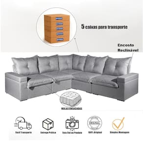 O Sofá de Canto Tera Luxo Bom Pastor 5 Lugares é a escolha ideal para quem busca conforto e sofisticação em um só móvel. Com medidas de 2,62 x 2,62 m de largura, 1,00 m de altura e 98 cm de profundidade, acomoda até 5 pessoas com muito espaço e estilo. Seu design moderno conta com encosto reclinável e molas ensacadas, garantindo maciez e sustentação no momento de relaxar. Fabricado com materiais de alta qualidade e direto da fábrica, é perfeito para valorizar a sua sala de estar com elegância e durabilidade. Direto da fábrica, o sofá é enviado na caixa, o que facilita o transporte, torna a entrega mais prática e é de montagem simples.