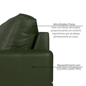 Imagens ilustrativas, cores podem variar. Uso interno. Verifique embalagem no recebimento. Montagem por conta do cliente. Não realizamos subida. Garantia: 90 dias. Produto Montado: Não Acompanha Almofadas extras: Não Almofada do assento: Fixa Almofada do encosto: Fixa Altura do assento até o chão: 45.0000 Altura do Braço: 60 cm Altura do Encosto: 45 cm Altura dos Pés: 15 cm Altura Máxima dos Pés: 15.0000 Ambiente Principal: Sala de Estar codigo_ean: 7900288241702 Cor: Musgo Cor do Produto: Musgo Densidade do Assento: D-26 Densidade do Encosto: D-26 Enchimento do Assento: Espuma Enchimento do Encosto: Fibra Siliconada Estilo de Braço: Braços Redondos Firmeza do Assento: Médio Informações Complementares: Evitar exposição direta à luz solar, limpar com escova com pano úmido semanalmente, não utilizar produtos químicos, removedores, alvejantes, etc. Evite exercer pressão excessiva sobre determinada partes do estofado, não utilizar para limpeza equipamentos Itens Inclusos: 1 Sofá Largura do Braço: 10 cm Linha ou Coleção: Porto Rico Marca: LEME MOVELARIA Material dos Pés: Ferro Necessita Montagem: Não Nível de Conforto: Intermediário Origem do Produto: Nacional Peso: 30.0000 Peso Suportado por m²: 130 kg/m² Pet Friendly: Sim Possui Mola: Sim Possui Percintas Elásticas: Sim Possui Pés: 08 Possui Rodízio: Não Quantidade de Itens: 1 Recomendações de Uso, Manutenção e Limpeza: Pano limpo e levemente úmido Suporta Até (kg): 130 kg Tecido Predominante: Couro Tipo de Encosto: Fixo Tipo de Mola: Molas Bonnel Tipo de Sofá: Sofá Comum