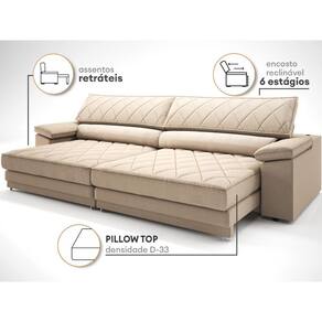Enchimento do Assento:Pillow top D-33, Percinta Elástica e Mola Bonnel e Molas ensacadas (duplo molejo)