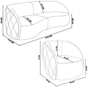 Dimensões do Produto Sofá: 318 x 79 x 110 cm. Poltrona: 90 x 78 x 95 cm. Profundidade: 110 cm. Peso: 133 kg.