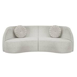 Características do Produto Material da estrutura: Madeira de Reflorestamento. Material do Assento: Espuma D26/Manta Acrílica. Material do Encosto: Espuma D26/Manta Acrílica. Revestimento: Boucle. Peso Suportado: 120 kg por assento. Quantidade de Assentos: 2 Assentos. Quantidade de Lugares: 4 Lugares. Tipo de Encosto: Fixo. Tipo de Assento: Fixo. Possui Pés: Sim. Material dos Pés: Sapatas Plásticas. É retrátil: Não. É reclinável: Não. É bipartido: Sim. Diferenciais: - Design moderno. - Acompanha 2 almofadas redondas. - Lado externo com detalhe costura estilo tressê. - Estrutura com tratamento contra mofo, cupim e micro-organismos. - Assento e encosto com cintas elásticas de sustentação de alta resistência. - Braças com espuma D26 e adornos com espuma D14. Sistema de Montagem: O produto é enviado montado, sendo necessário somente parafusar os pés. Manual de Montagem: Não. Volumes: 2 Volumes. Conteúdo da Embalagem: 1 Sofá. Garantia do Fabricante: 90 dias contra defeito de fabricação. Montagem: Recomendamos que seja feita por um profissional. Recomendação de Limpeza: Utilize pano levemente úmido.