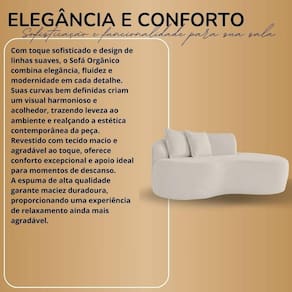 A espuma de alta densidade proporciona conforto imediato, mantendo o visual sempre bonito e bem estruturado. O toque macio do tecido bouclé completa a experiência, tornando o Sofá Orgânico ideal para momentos de descanso e recepção de convidados.