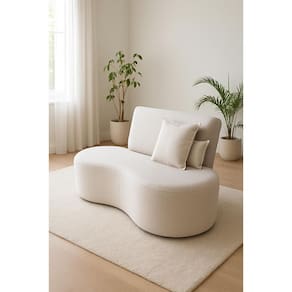 Com seu formato orgânico e curvo, ele rompe com o convencional e se destaca como protagonista em estúdios de fotografia, recepções elegantes, lojas conceito ou salas de estar que buscam personalidade. O estofado em bouclé premium, suavemente texturizado, oferece um toque acolhedor e visual luxuoso.