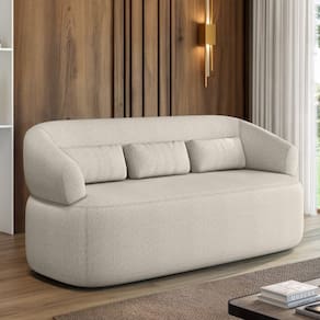 Caracteristicas: Sofa Marca: Just Time Modelo: Duomo Tecido: Boucle Estrutura: Madeira Eucalipto e Placas de Multilaminado Tipo de Assento: Anatomico com Percintas elastica Tipo de Encosto: Encosto fixo com almofada solta Tipo de Espuma: Espuma do Assento Soft D28 revestida com fibra de silicone. Almofada solta composta de espuma soft e fibras siliconadas Base/ Pes: Pes de madeira macica ocultos Peso Maximo Suportado: 150 kg