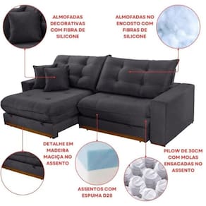 Encosto: Reclinavel com Almofadas de Fibras de Poliester Siliconadas