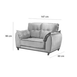 Sofá Espanha JC 2 Lugares 147cm Tecido Veludo O Sofá Espanha JC 2 Lugares 147cm Tecido Veludo é a escolha perfeita para quem busca unir conforto e elegância. O revestimento em veludo proporciona uma textura macia e agradável ao toque, além de um visual sofisticado que enriquece a decoração de qualquer sala de estar. Seu design clássico e atemporal garante que ele se adapte facilmente a diferentes estilos de ambiente, oferecendo o espaço ideal para relaxar e receber amigos e familiares com muito estilo.\nMEDIDAS\nAltura 98 cm\nLargura 147 cm\nProfundidade 80 cm\nCARACTERÍSTICAS\nFabricante JC Estofados\nModelo Sofá Espanha JC 2 Lugares\nGarantia 3 meses\nTipo de Produto Sofá 2 Lugares\nAmbiente Sala\nEstrutura Madeira de Eucalipto Reflorestado\nTecido Revestimento Veludo\nAssento Assento de 10cm com Espuma D28 e Percinta Elástica\nEncosto Almofadas Preenchidas com Fibra de Silicone\nMaterial Pés Madeira\nINFORMAÇÕES IMPORTANTES\nObjetos decorativos que porventura apareçam na foto, não acompanham o produto. Não nos responsabilizamos pela montagem/instalação dos produtos.\nMontagens, desmontagens e instalações são responsabilidades do cliente. Indicamos que contrate uma empresa de montagem ou um montador de sua confiança.\nAlém disso, favor verificar se os pés e acessórios estão dentro do forro inferior do produto. Em suma, todas as informações divulgadas sobre o produto são de responsabilidade do Fabricante.\nAs cores do produto podem variar de acordo com o seu monitor, a iluminação do ambiente em que você está e até mesmo a sua percepção visual. Além da cor, pequenos detalhes e acabamentos podem não ficar evidentes na foto, por isso as imagens são meramente ilustrativas.