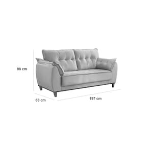 Sofá Espanha JC 3 Lugares 197cm Tecido Veludo O Sofá Espanha JC 3 Lugares 197cm Tecido Veludo é a escolha perfeita para quem busca unir conforto e elegância. O revestimento em veludo proporciona uma textura macia e agradável ao toque, além de um visual sofisticado que enriquece a decoração de qualquer sala de estar. Seu design clássico e atemporal garante que ele se adapte facilmente a diferentes estilos de ambiente, oferecendo o espaço ideal para relaxar e receber amigos e familiares com muito estilo.\nMEDIDAS\nAltura 98 cm\nLargura 197 cm\nProfundidade 80 cm\nCARACTERÍSTICAS\nFabricante JC Estofados\nModelo Sofá Espanha JC 3 Lugares\nGarantia 3 meses\nTipo de Produto Sofá 3 Lugares\nAmbiente Sala\nEstrutura Madeira de Eucalipto Reflorestado\nTecido Revestimento Veludo\nAssento Assento de 10cm com Espuma D28 e Percinta Elástica\nEncosto Almofadas Preenchidas com Fibra de Silicone\nMaterial Pés Madeira\nINFORMAÇÕES IMPORTANTES\nObjetos decorativos que porventura apareçam na foto, não acompanham o produto. Não nos responsabilizamos pela montagem/instalação dos produtos.\nMontagens, desmontagens e instalações são responsabilidades do cliente. Indicamos que contrate uma empresa de montagem ou um montador de sua confiança.\nAlém disso, favor verificar se os pés e acessórios estão dentro do forro inferior do produto. Em suma, todas as informações divulgadas sobre o produto são de responsabilidade do Fabricante.\nAs cores do produto podem variar de acordo com o seu monitor, a iluminação do ambiente em que você está e até mesmo a sua percepção visual. Além da cor, pequenos detalhes e acabamentos podem não ficar evidentes na foto, por isso as imagens são meramente ilustrativas.