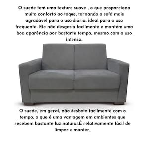 O Sofá Estofado 2 Lugares é Espaçoso e confortável , perfeito para momentos de relaxamento e para receber visitas. Tecido Suede de Alta Qualidade: Macio ao toque e resistente, o tecido suede e espuma de densidade D-23 dá um toque de elegância e modernidade à sua sala