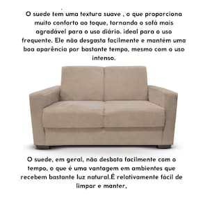 O Sofá Estofado 2 Lugares é Espaçoso e confortável , perfeito para momentos de relaxamento e para receber visitas. Tecido Suede de Alta Qualidade: Macio ao toque e resistente, o tecido suede e espuma de densidade D-23 dá um toque de elegância e modernidade à sua sala.