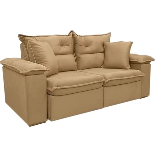 Sofá Ferrari 3 Lugares Retrátil e Reclinável Tecido Veludo 200cm L3 Estofados O Sofá Ferrari 3 Lugares Retrátil e Reclinável Tecido Veludo 200cm L3 Estofados é a escolha ideal para quem busca conforto e funcionalidade em um só móvel. Revestido em veludo, ele proporciona um toque macio e um visual sofisticado para a sala de estar. Seus assentos retráteis com espuma D-26 e encostos reclináveis em cinco posições, preenchidos com fibra siliconada, garantem o máximo de conforto para relaxar, assistir a um filme ou ler um livro. A estrutura do sofá é feita com madeira de eucalipto de reflorestamento, seca e imunizada, o que assegura maior durabilidade e resistência. Com uma largura de 200 cm, este sofá de 3 lugares é robusto e feito para durar. A montagem é simplificada por um sistema de encaixes, facilitando tanto a instalação quanto uma eventual necessidade de desmontagem.\nMEDIDAS\nAltura 110cm\nLargura 200cm\nProfundidade Fechado 95cm\nProfundidade Aberto 160cm\nCARACTERÍSTICAS\nFabricante L3 Estofados\nModelo Sofá Ferrari\nGarantia 3 meses\nTipo de produto Sofá Retrátil e Reclinável\nAmbiente Sala\nPreenchimento Assento Espuma D26\nPreenchimento Encosto Fibra Siliconada\nEstrutura Madeira Eucalipto Reflorestada\nEstilo Moderno\nPossui Rodízios de Silicone Sim\nAcompanha Almofadas Sim\nINFORMAÇÕES IMPORTANTES\nObjetos decorativos que porventura apareçam na foto, não acompanham o produto. Não nos responsabilizamos pela montagem/instalação dos produtos.\nMontagens, desmontagens e instalações são responsabilidades do cliente. Indicamos que contrate uma empresa de montagem ou um montador de sua confiança.\nAlém disso, favor verificar se os pés e acessórios estão dentro do forro inferior do produto. Em suma, todas as informações divulgadas sobre o produto são de responsabilidade do Fabricante.\nAs cores do produto podem variar de acordo com o seu monitor, a iluminação do ambiente em que você está e até mesmo a sua percepção visual. Além da cor, pequenos detalhes e acabamentos podem não ficar evidentes na foto, por isso as imagens são meramente ilustrativas.