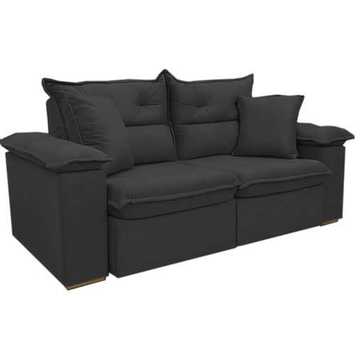 Sofá Ferrari 3 Lugares Retrátil e Reclinável Tecido Veludo 200cm L3 Estofados O Sofá Ferrari 3 Lugares Retrátil e Reclinável Tecido Veludo 200cm L3 Estofados é a escolha ideal para quem busca conforto e funcionalidade em um só móvel. Revestido em veludo, ele proporciona um toque macio e um visual sofisticado para a sala de estar. Seus assentos retráteis com espuma D-26 e encostos reclináveis em cinco posições, preenchidos com fibra siliconada, garantem o máximo de conforto para relaxar, assistir a um filme ou ler um livro. A estrutura do sofá é feita com madeira de eucalipto de reflorestamento, seca e imunizada, o que assegura maior durabilidade e resistência. Com uma largura de 200 cm, este sofá de 3 lugares é robusto e feito para durar. A montagem é simplificada por um sistema de encaixes, facilitando tanto a instalação quanto uma eventual necessidade de desmontagem.\nMEDIDAS\nAltura 110cm\nLargura 200cm\nProfundidade Fechado 95cm\nProfundidade Aberto 160cm\nCARACTERÍSTICAS\nFabricante L3 Estofados\nModelo Sofá Ferrari\nGarantia 3 meses\nTipo de produto Sofá Retrátil e Reclinável\nAmbiente Sala\nPreenchimento Assento Espuma D26\nPreenchimento Encosto Fibra Siliconada\nEstrutura Madeira Eucalipto Reflorestada\nEstilo Moderno\nPossui Rodízios de Silicone Sim\nAcompanha Almofadas Sim\nINFORMAÇÕES IMPORTANTES\nObjetos decorativos que porventura apareçam na foto, não acompanham o produto. Não nos responsabilizamos pela montagem/instalação dos produtos.\nMontagens, desmontagens e instalações são responsabilidades do cliente. Indicamos que contrate uma empresa de montagem ou um montador de sua confiança.\nAlém disso, favor verificar se os pés e acessórios estão dentro do forro inferior do produto. Em suma, todas as informações divulgadas sobre o produto são de responsabilidade do Fabricante.\nAs cores do produto podem variar de acordo com o seu monitor, a iluminação do ambiente em que você está e até mesmo a sua percepção visual. Além da cor, pequenos detalhes e acabamentos podem não ficar evidentes na foto, por isso as imagens são meramente ilustrativas.
