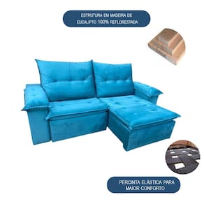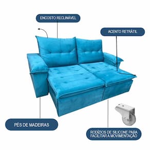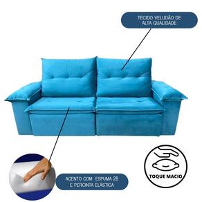 Sofá Firenze Azul Vários Tamanhos Retrátil Reclinável para Maratonar Series Nosso Sofá Retrátil Reclinável Firenze é um produto moderno, com design elegante que combina com qualquer ambiente e deixa sua sala ainda mais linda e aconchegante. MEDIDAS DO SOFÁ: Altura: 1.05 mLargura: 2.00 mProfundidade fechado: 1.20 mProfundidade aberto: 1.80 m Assento: O assento retrátil contem espuma 28 Soft, percinta elástica e molas bonel que proporcionam uma acomodação extremamente confortável. Encosto: O encosto reclinável é feito com espuma 100% fibra de silicone. Além disso, as catracas são de ferro blindado com várias posições de inclinação, trazendo mais conforto para você na hora do descanso. Estrutura: Sua estrutura é com madeira de eucalipto, 100% reflorestada e seca em estufa, e os pés são produzidos em madeira e rodízio de silicone Revestimento: O revestimento é em tecido veludão premium, deixando a superfície do sofá muito mais macia. Braços: Braços com Fibra de silicone.