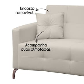 CARACTERÍSTICAS DO PRODUTO: - Estofamento: Espuma D28 e manta acrílica; - Revestimento: Linho; - Acompanha duas almofadas; - Assento com espuma e molas serpentina; - Estrutura: Madeira de eucalipto de reflorestamento; - Pés em metal, com acabamento fosco, com pintura na cor rosê; - Encosto removível, facilita o acesso pelas portas; - Modelo living fixo;