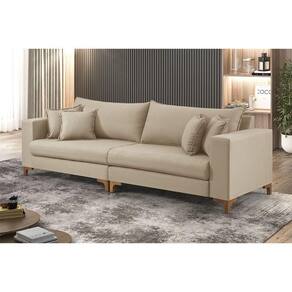 Com capacidade para 4 lugares, ele conta com assento fixo com molas Bonnel, encosto com almofadas soltas e estrutura reforcada, garantindo conforto duradouro e sofisticacao para salas de estar, recepcoes ou ambientes corporativos.