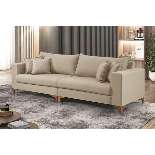 Sofá Fixo 3 Lugares M-197 2,40m Estofados Martins Linho Bege