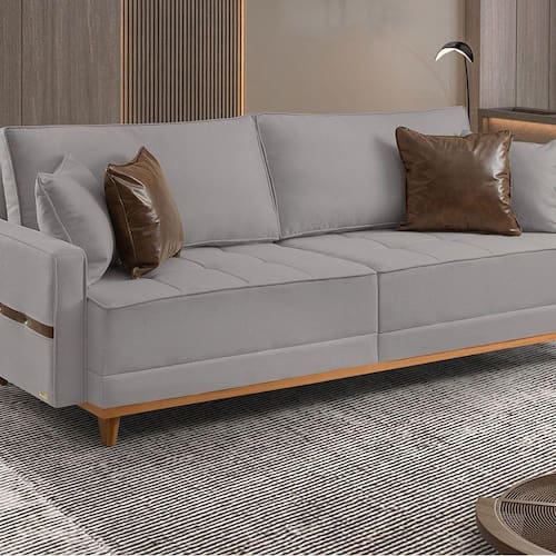 Estrutura em madeira de eucalipto tratada, assento em espuma D-28 Soft e molas Bonnel, encosto em fibra siliconada, pés em madeira maciça, revestimento em tecido linho.Vendido e entregue por WebContinental