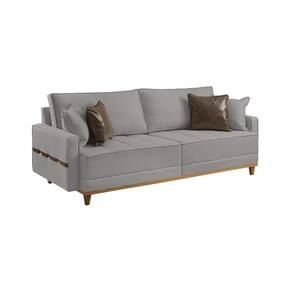Sofa Fixo 3 Lugares M-203 2,00m Molas Bonnel Almofadas Soltas Linho Estofados Martins - Cinza