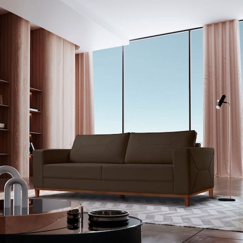 O Sofá Roma é a combinação perfeita entre qualidade, conforto e elegância, projetado para transformar seu lar em um ambiente ainda mais bonito e acolhedor. Confeccionado com materiais de excelência, oferece uma experiência única de conforto, com estofado macio e durável. Seu design sofisticado e atemporal se adapta a diferentes estilos de decoração, tornando-o a peça central da sua sala de estar. Com um acabamento impecável, o Sofá Roma não só embeleza o ambiente, mas também garante resistência e praticidade no dia a dia. Ideal para quem busca sofisticação sem abrir mão do conforto. Produto Montado: Sim Acompanha Almofadas extras: Não Almofada do assento: Fixa Almofada do encosto: Fixa Altura do assento até o chão: 46.0000 Altura do Encosto: 46 cm Altura dos Pés: 13 cm Altura Máxima dos Pés: 13.0000 Ambiente Principal: Sala de Estar codigo_ean: 7900288022950 Complexidade da Montagem: Baixa: pode ser montado por uma pessoa sozinha Cor: Marrom Cor do Produto: Marrom Densidade do Assento: D-28 Enchimento do Assento: Espuma Enchimento do Encosto: Fibra Siliconada Firmeza do Assento: Médio Itens Inclusos: 1 Sofá + 1 kit pés Marca: Encantare Material dos Pés: Madeira Necessita Montagem: Sim Peso: 70 kg Pet Friendly: Não Possui Percintas Elásticas: Sim Possui Pés: 05 Possui Rodízio: Não Recomendações de Uso, Manutenção e Limpeza: Limpeza com pano seco Sistema de Montagem: Parafusos Suporta Até (kg): 100 kg Tecido Predominante: Veludo Tipo de Encosto: Fixo Tipo de Mola: Molas Bonnel Tipo de Sofá: Sofá Comum Marca: Encantare