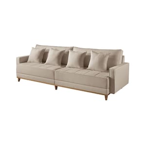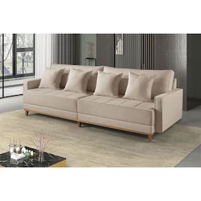 Sofa Fixo 4 Lugares M-199 2,20m Molas Bonnel Almofadas Soltas Linho Estofados Martins - Bege Médio