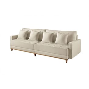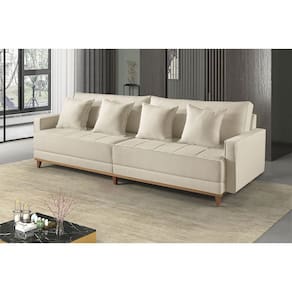 Sofa Fixo 5 Lugares M-199 2,40m Molas Bonnel Almofadas Soltas Linho Estofados Martins - Bege Claro