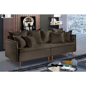 Modelo sofisticado e contemporâneo que combina os detalhes dos braços pilados com o capitonês do assento e as almofadas. Ideal para espaços compactos, ele é aconchegante e possui um design que vai elevar a decoração do seu ambiente para outro nível!