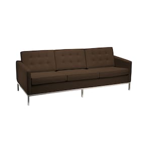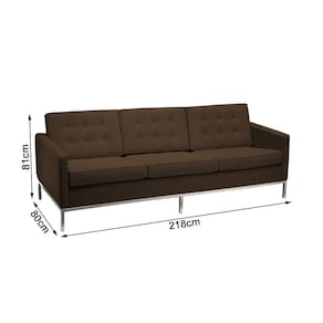 Sofá Fixo Florence Knoll 3 Lugares Inox em Couro Natural Marrom