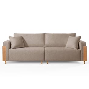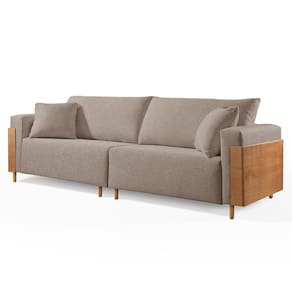 Sofá Fixo Heitor 3 Lugares Luxo Pé de Madeira 2,20m Castellar Móbile Linho Cappuccino - Bege