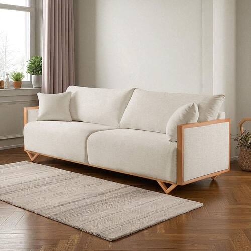 O sofá Lara é um modelo contemporâneo e minimalista. Suas linhas retas e a estrutura esbelta em madeira trazem leveza e modernidade ao ambiente. Com pés angulados e almofadas soltas, ele é ideal para quem busca conforto com sofisticação descomplicada.