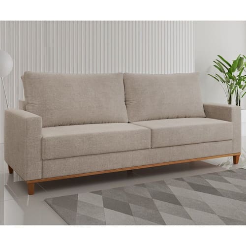 O estofado Ares é ideal para quem busca espaço e conforto no dia a dia. Com 2,20m de largura, acomoda até 4 lugares com excelente distribuição, seus pés de madeira agregam resistência e elegância ao design. As almofadas removíveis, com enchimento 100% em fibra siliconada, garantem maciez e praticidade na limpeza. Os assentos possuem espuma D23, percinta elástica e 2 molas Bonnel de 10cm por assento, proporcionando firmeza e durabilidade. Revestido em tecido linhão, traz um toque sofisticado e aconchegante ao ambiente. Produto Montado: Sim Acompanha Almofadas extras: Não Almofada do assento: Fixa Almofada do encosto: Removível Altura do assento até o chão: 40.5000 Altura do Encosto: 45 cm Altura dos Pés: 15,5 cm Altura Máxima dos Pés: 15.5000 Ambiente Principal: Sala de Estar codigo_ean: 7900288249036 Complexidade da Montagem: Baixa: pode ser montado por uma pessoa sozinha Cor: Castanho Cor do Produto: Castanho Itens Inclusos: 1 Sofá, Kit Ferragens e Manual de Montagem Linha ou Coleção: Ares Manual de Montagem e Instalação: https://product-hub-prd.madeiramadeira.com.br/647657300/documents/fd5adc01-dedb-47b9-b328-335a2f9b1a5b319657152817576051998842.pdf Marca: Viero Material dos Pés: Madeira Necessita Montagem: Sim Origem do Produto: Nacional Pet Friendly: Não Possui Percintas Elásticas: Sim Possui Pés: 06 Possui Rodízio: Não Recomendações de Uso, Manutenção e Limpeza: Limpar com pano levemente umedecido com água Sistema de Montagem: Parafusos Suporta Até (kg): 180 kg Tecido Predominante: Linhão Tipo de Encosto: Fixo Tipo de Mola: Molas Bonnel Tipo de Sofá: Sofá Comum
