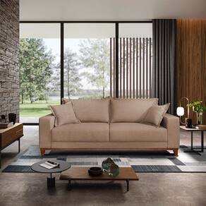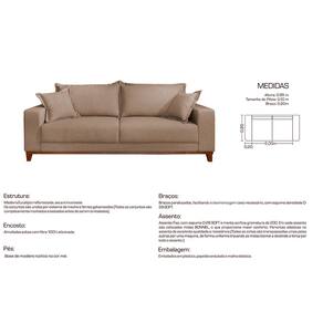 Características: Material da Estrutura: Madeira maciça reflorestada, seca e imunizada em estufa. Tecido: Linho. Assento: Molas, Espuma D28 Soft e Manta Acrílica. Encosto: Almofadas Soltas 100 fibras siliconadas. Braços: Espuma D-28 Soft. Pés: Madeira maciça. Embalagem: Papel Ondulado, Plástico e Malha. Necessita Montagem: Não. Capacidade em KG por Lugar: Aproximadamente 180kg.
