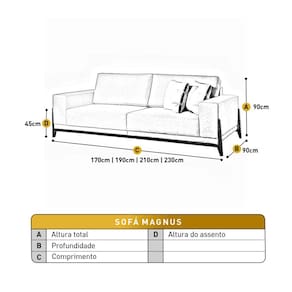 Dimensões: Altura: 90 cm Largura: 210 cm Profundidade: 90 cm Peso: 64 Kg