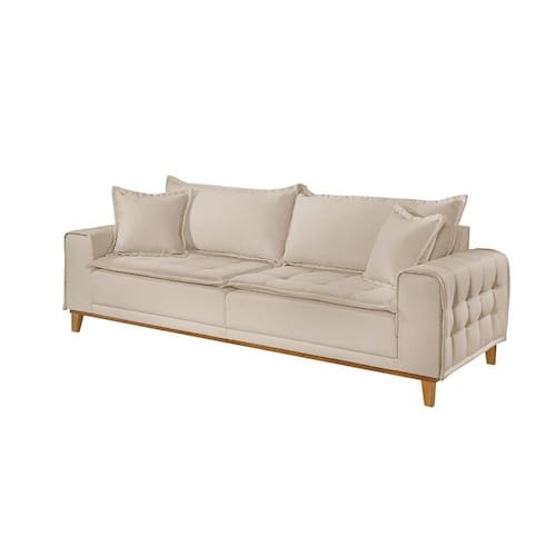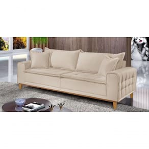 Com um visual elegante e moderno, o sofá conta com detalhes que valorizam o seu ambiente. Composto com capa nos braços, a base inteira com pés delicados, almofadas e o assento com pillow top capitonê, esse tipo de móvel oferece um maior conforto e beleza.