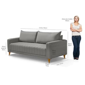 Sofá Fixo 2 Lugares AlaskaO sofá irá revitalizar e torna seu ambiente mais aconchegante,com design moderno e inovador que complementa a decoração proporcionando conforto para receber amigos e familiares.Produzido em madeira de reflorestamento imunizada, revestido em linho, conta com assento retrátil e para desfrutar daqueles dias em que você só querrelaxar enquanto assiste seus filmes e séries prediletas.Além disso seu assento em percinta elástica de alta resistência,Molas Bonnel e Ensacadas com espuma D-26 Macia, seu encosto em fibra siliconada, pés em madeira dando toda qualidade e durabilidade.Pesos e DimensõesAltura dos Pés 13 cmAltura do Assento até o Chão 46 cmAltura do Encosto 63 cmAltura do Braço 62 cmAltura (cm) 90 cmLargura (cm) 192 cmProfundidade (cm) 91 cmPeso (kg) 45 kgGarantiaGarantia 03 MesesMateriais e AcabamentosMaterial dos Pés MadeiraMaterial da Estrutura EucaliptoRevestimento do Braço Espuma D-23MontagemNecessita Montagem SimMontagem Flex nãoComplexidade da Montagem Baixa: pode ser montado por uma pessoa sozinhaSistema de Montagem inclusoRecomendações de Uso, Manutenção e LimpezaNão Utilize produtos químicos, nem aparelhos a vapor ou secador quente Marca: Não Informado