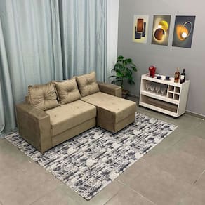 Sofá Florença 3 Lugares com Chaise Tecido Suede 200cm O Sofá Florença 3 Lugares com Chaise Tecido Suede 200cm te oferece aquilo que você tanto procura: sofisticação, qualidade e beleza em um único produto. Confeccionado com materiais de ótima qualidade, ele possui estrutura em Eucalipto, com percintas elásticas e espuma D28, o que tornará o seu descanso muito mais prazeroso. Tudo isso revestido pelo tecido suede, de textura macia, resistente e maleável.\nMedidas\nAltura 85 cm\nLargura 200 cm\nProfundidade 76 cm\nProfundidade Chaise 123 cm\nCaracterísticas\nModelo Sofá Florença\nTipo do produto Sofá\nFabricante Aifos\nMaterial da Estrutura Madeira de Eucalipto\nAcompanha Almofadas Sim\nConsistência do Assento Macio\nEnchimento do Assento Espuma D28\nEnchimento dos Braços Espuma D28\nTipo de Percinta Percinta Elástica\nPossui Pés Sim\nTipo de Chaise Fixo\nTipo de Almofada Solta\nGarantia 3 meses\nInformações Importantes\nObjetos decorativos que porventura apareçam na foto, não acompanham o produto. Não nos responsabilizamos pela montagem/instalação dos produtos.\nMontagens, desmontagens e instalações são responsabilidades do cliente. Indicamos que contrate uma empresa de montagem ou um montador de sua confiança.\nAlém disso, favor verificar se os pés e acessórios estão dentro do forro inferior do produto. Em suma, todas as informações divulgadas sobre o produto são de responsabilidade do Fabricante.\nAs cores do produto podem variar de acordo com o seu monitor, a iluminação do ambiente em que você está e até mesmo a sua percepção visual. Além da cor, pequenos detalhes e acabamentos podem não ficar evidentes na foto, por isso as imagens são meramente ilustrativas.