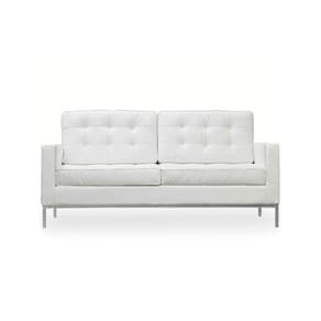 Sofá Florence Knoll 2 Lugares Cromado em Couro Natural Branco