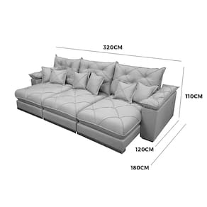 Sofá Gran Plus 320cm em Veludo com Molas Ensacadas 6 Lugares 3 Módulos Retrátil e Reclinável Império Conheça o incrível Sofá Gran Plus 320cm em Veludo com Molas Ensacadas 6 Lugares 3 Módulos Retrátil e Reclinável Império! Este sofá é o rei da sala, pronto para trazer conforto e elegância para o seu lar. Imagine-se afundando neste sofá macio e acolhedor após um longo dia de trabalho, com a sensação de estar sentado em uma nuvem fofinha. Com 320cm de puro conforto, este sofá é perfeito para relaxar ou receber os amigos e familiares para uma noite de filmes e pipoca. Por que escolher o Sofá Gran Plus? Este sofá é reclinável e retrátil, permitindo que você encontre a posição perfeita para assistir TV ou tirar uma soneca relaxante. As molas ensacadas garantem apoio e durabilidade, enquanto o tecido de veludo traz um toque luxuoso e sofisticado para a sua sala. Além disso, o Sofá Gran Plus é espaçoso o suficiente para acomodar até 6 pessoas, então não se preocupe em escolher quem pode sentar em seu assento super confortável. Agora todos podem desfrutar juntos dos momentos especiais. Adquira o Sofá Gran Plus 320cm em Veludo com Molas Ensacadas 6 Lugares 3 Módulos Retrátil e Reclinável Império hoje mesmo e transforme sua sala em um paraíso do conforto e estilo!\nMEDIDAS\nAltura 110cm\nLargura 320cm\nProfundidade Fechado 120cm\nProfundidade Aberto 180cm\nCARACTERÍSTICAS\nFabricante Império\nModelo Sofá Gran Plus 320cm em Veludo\nGarantia 3 meses\nTipo de produto Sofá Retrátil e Reclinável\nAmbiente Sala\nAssento Retrátil com Percinta Elástica, Pillow de 26cm, Molas Ensacadas e Espuma D28\nEncosto Reclinável em 5 Posições, Preenchido com Fibra Siliconada\nMaterial Pés Madeira Maciça\nRevestimento Veludo\nPossui Rodízios de Silicone Sim\nAcompanha Almofadas Sim\nINFORMAÇÕES IMPORTANTES\nObjetos decorativos que porventura apareçam na foto, não acompanham o produto. Não nos responsabilizamos pela montagem/instalação dos produtos.\nMontagens, desmontagens e instalações são responsabilidades do cliente. Indicamos que contrate uma empresa de montagem ou um montador de sua confiança.\nAlém disso, favor verificar se os pés e acessórios estão dentro do forro inferior do produto. Em suma, todas as informações divulgadas sobre o produto são de responsabilidade do Fabricante.\nAs cores do produto podem variar de acordo com o seu monitor, a iluminação do ambiente em que você está e até mesmo a sua percepção visual. Além da cor, pequenos detalhes e acabamentos podem não ficar evidentes na foto, por isso as imagens são meramente ilustrativas