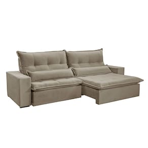 Assento: Retrátil com percinta elástica, molas espirais, espuma D-28, pillow de 15 cm, molas ensacadas e matelasse.