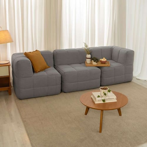 sofá guldi popup com 2 módulos canto e central linho cinza
