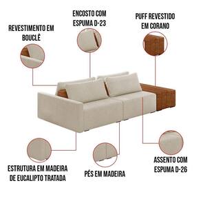 O Sofá Ilha 2 Lugares Living Lary de 232 cm é uma peça de destaque para qualquer ambiente, com um design moderno este sofá apresenta uma estrutura modular permitindo reorganizá-la criando um layout personalizado. Revestido no luxuoso tecido Bouclê, proporcionando uma sensação de aconchego e sofisticação. Seu assento é fixo em espuma D-26 com multimolas de sustentação espiral e ensacadas, solda dupla, manta acrílica e percintas elásticas, suportando até 150 kg por assento. Já o encosto possui espuma D-23 sendo ele removível, com almofadas soltas preenchidas com 100% de fibra siliconada, proporcionando um apoio macio para as costas. Os pés são feitos em madeira certificando maior estabilidade ao móvel. Este sofá apresenta características de alta qualidade, incluindo uma estrutura de madeira tratada de eucalipto reflorestada, garantindo maior resistência e durabilidade ao produto, além de contribuir para a sustentabilidade ambiental. Com cinco assentos no total, um deles revestido em tecido Sintético Pu Preto com detalhes em gomos feito com a técnica de costura pespontos, este sofá oferece espaço suficiente para acomodar confortavelmente até seis pessoas, tornando-o ideal para receber amigos e familiares com estilo e conforto. Pode ser utilizado em escritórios, restaurantes e demais ambientes corporativos.O Sofá Lary é a escolha perfeita para quem busca uma peça de mobiliário que une funcionalidade, conforto e estilo em uma única solução para o seu ambiente. Aproveite!
