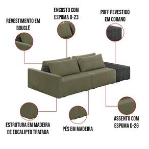 O Sofá Ilha 2 Lugares Living Lary de 232 cm é uma peça de destaque para qualquer ambiente, com um design moderno este sofá apresenta uma estrutura modular permitindo reorganizá-la criando um layout personalizado. Revestido no luxuoso tecido Bouclê, proporcionando uma sensação de aconchego e sofisticação. Seu assento é fixo em espuma D-26 com multimolas de sustentação espiral e ensacadas, solda dupla, manta acrílica e percintas elásticas, suportando até 150 kg por assento. Já o encosto possui espuma D-23 sendo ele removível, com almofadas soltas preenchidas com 100% de fibra siliconada, proporcionando um apoio macio para as costas. Os pés são feitos em madeira certificando maior estabilidade ao móvel. Este sofá apresenta características de alta qualidade, incluindo uma estrutura de madeira tratada de eucalipto reflorestada, garantindo maior resistência e durabilidade ao produto, além de contribuir para a sustentabilidade ambiental. Com cinco assentos no total, um deles revestido em tecido Sintético Pu Preto com detalhes em gomos feito com a técnica de costura pespontos, este sofá oferece espaço suficiente para acomodar confortavelmente até seis pessoas, tornando-o ideal para receber amigos e familiares com estilo e conforto. Pode ser utilizado em escritórios, restaurantes e demais ambientes corporativos.O Sofá Lary é a escolha perfeita para quem busca uma peça de mobiliário que une funcionalidade, conforto e estilo em uma única solução para o seu ambiente. Aproveite!