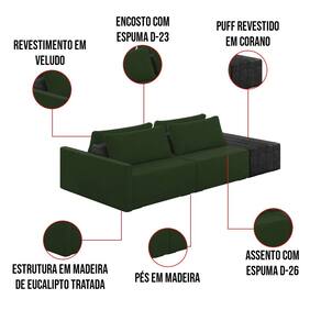 Sofá Ilha 2 Lugares Living 232cm Modulado Sala Lary Veludo/PU Pto K01 - D`Rossi - Verde