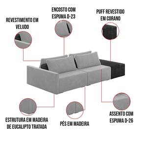 O Sofá Ilha 2 Lugares Living Lary de 232 cm é uma peça de destaque para qualquer ambiente, com um design moderno este sofá apresenta uma estrutura modular permitindo reorganizá-la criando um layout personalizado. Revestido no luxuoso tecido Veludo, proporcionando uma sensação de aconchego e sofisticação. Seu assento é fixo em espuma D-26 com multimolas de sustentação espiral e ensacadas, solda dupla, manta acrílica e percintas elásticas, suportando até 150 kg por assento. Já o encosto possui espuma D-23 sendo ele removível, com almofadas soltas preenchidas com 100% de fibra siliconada, proporcionando um apoio macio para as costas. Os pés são feitos em madeira certificando maior estabilidade ao móvel. Este sofá apresenta características de alta qualidade, incluindo uma estrutura de madeira tratada de eucalipto reflorestada, garantindo maior resistência e durabilidade ao produto, além de contribuir para a sustentabilidade ambiental. Com cinco assentos no total, um deles revestido em tecido Sintético Pu Preto com detalhes em gomos feito com a técnica de costura pespontos, este sofá oferece espaço suficiente para acomodar confortavelmente até seis pessoas, tornando-o ideal para receber amigos e familiares com estilo e conforto. Pode ser utilizado em escritórios, restaurantes e demais ambientes corporativos.O Sofá Lary é a escolha perfeita para quem busca uma peça de mobiliário que une funcionalidade, conforto e estilo em uma única solução para o seu ambiente. Aproveite!
