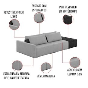 Diferenciais: Sofá modular, estilo ilha, pode ser aproveitado assentos em ambos os lados. Acompanha almofadas. Ideal para sala de estar, living e ambientes integrados