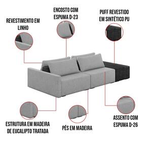Diferenciais: Sofá modular, estilo ilha, pode ser aproveitado assentos em ambos os lados. Acompanha almofadas. Ideal para sala de estar, living e ambientes integrados